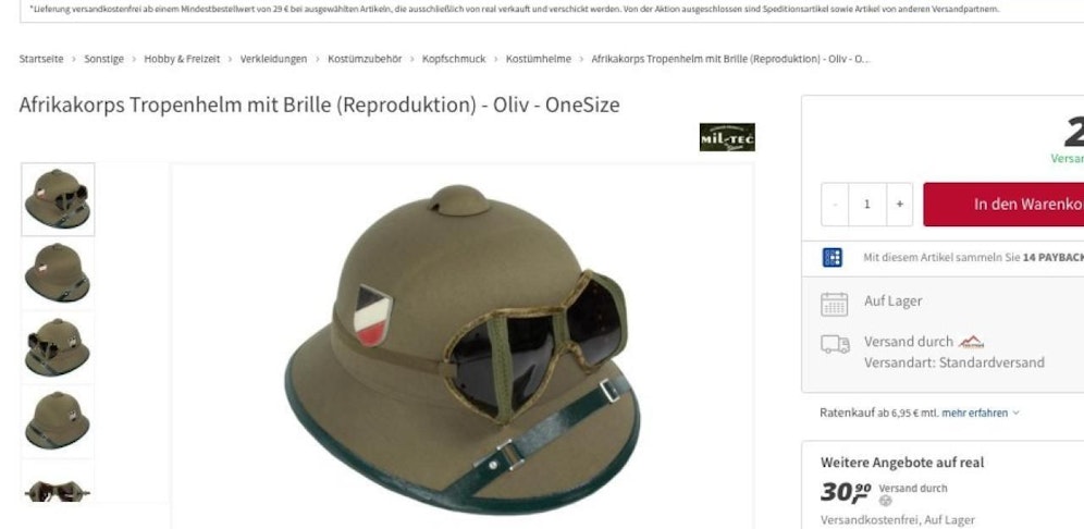 Wie kann es tatsächlich passieren, dass solche Artikel im Onlineshop der Handelskette landen? "Real distanziert sich eindeutig vom Angebot und Verkauf dieser Artikel und hat (...) verdächtige Artikel sofort aus dem Angebot des Onlineshops entfernt", heißt es in einem Statement. Die Artikel stammen von Drittanbietern, so wie das bei Amazon etwa auch üblich ist. Das Sortiment, das im Onlineshop landet, sollte zwar klar geregelt sein, dennoch musste Real zum "großen Bedauern feststellen, dass sich im Angebot Dritter auch Artikel befinden, die die Vorgänge in der Zeit des Nationalsozialismus verherrlichen und als Fan-Artikel angeboten werden."