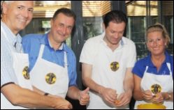 Lässige Aktion: Am Sonntag kochte Herbert Hausmair nicht in seiner legendären "Hausmair's Gaststätte" auf der Lerchenfelder Straße, sondern stand in der "Gruft" in Mariahilf hinter dem Herd. Gemeinsam mit der ÖVP-Nationalratskandidatin Christina Schlosser und mit Bauernbund-Direktor Norbert Totschnig kochte der Promi-Wirt Marillenknödel für die Obdachlosen.
