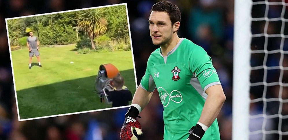 Muss Ralph Hasenhüttls Tormanntrainer bei Southampton um seinen Job zittern? Im "Home-Office" trainiert Alex McCarthy, die Nummer eins der Saints, mit seiner kleinen Tochter.