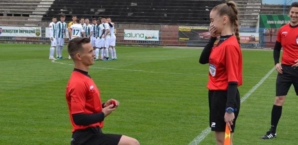Dabei ist zu hoffen, dass es sich um eine richtige Entscheidung handelt. Denn Marius Matica ging noch vor dem Anpfiff auf die Knie. In einem rührenden Video ist zu sehen, wie er einen Ring aus der Tasche holt und seiner Freundin Gyorgyi einen Heiratsantrag macht.