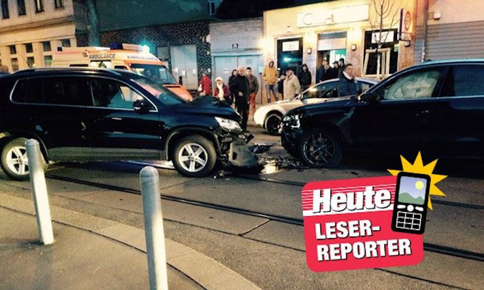 Der irrste der drei Crashs passierte in der Nacht auf Freitag in der Klosterneuburgerstraße in Brigittenau (siehe Foto oben). Zwei Autos waren frontal ineinander gekracht. Wegen dem Unfall war auch die Strecke der Straßenbahnlinie 31 blockiert.