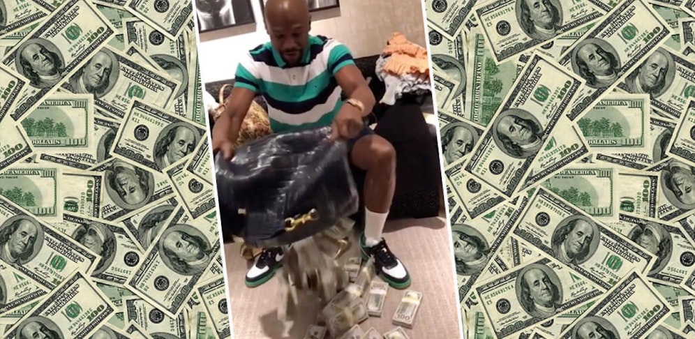 Die Tasche ist randvoll mit Geldscheinen. Mayweather leert den Inhalt auf den Boden. Offenbar hat er vor, seinen ganzen Einkauf in Bar zu bezahlen. Ein Problem bleibt jedoch: Stil kann man nicht kaufen. Bei den strahlend weißen Tennis-Socken zu der kurzen Hose könnte sich der US-Star doch nochmals beraten lassen. (heute.at)