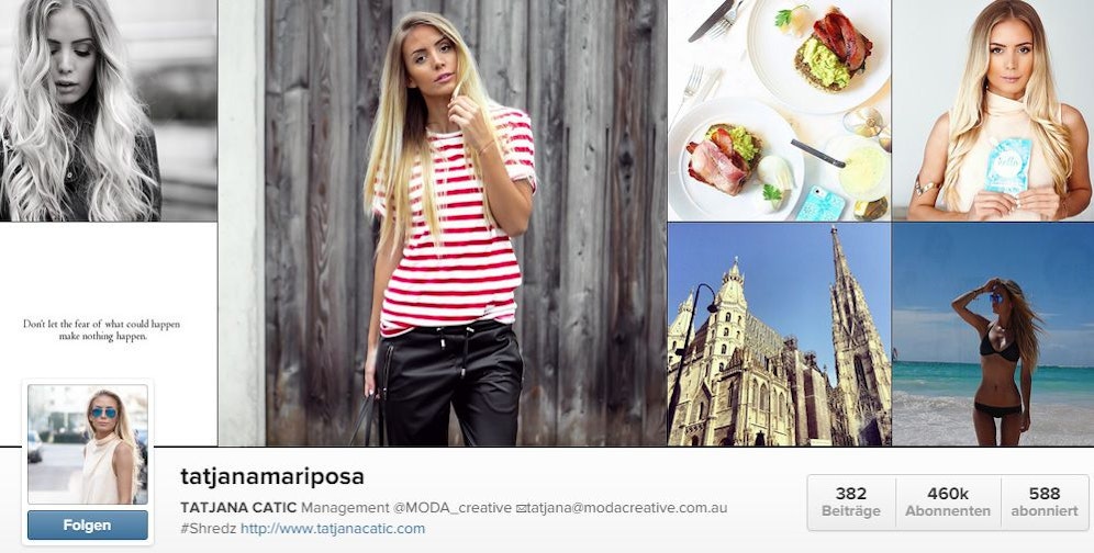 Mehr als 460.000 Follower hat die 23-Jährige, die schon für Marken wie Intimissimi, H&M und L’Oreal gemodelt hat. Momentan ist Tatjana in Australien, als nächstes will sie in die USA: "Das Reisen liebe ich an meinem Job besonders", erzählt sie.