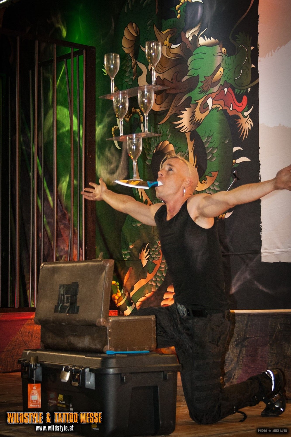 Zum ersten Mal in Österreich ist die "Georgie & Maiya" vom weltbekannten "Circus of Horror" auf der Messe zu sehen. Georgie gehört zu den Top- Schwertschluckern weltweit und mit seiner Partnerin Majya zeigt er extreme und extrem gefährliche Stunts, wie Messer-Acts und Glas essen.