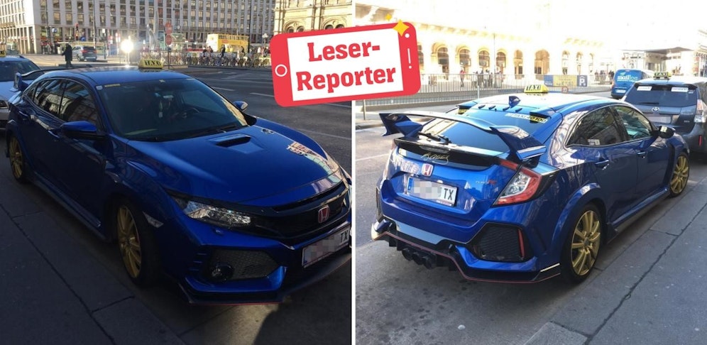 "Hierbei handelt es sich wohl um das PS-stärkste Taxi in Wien", schreibt "Heute"-Leserreporter Thomas, kurz nachdem er die Fotos von einem Honda Civic Type R-Taxi von seinem Bruder weitergeleitet bekommen hat.