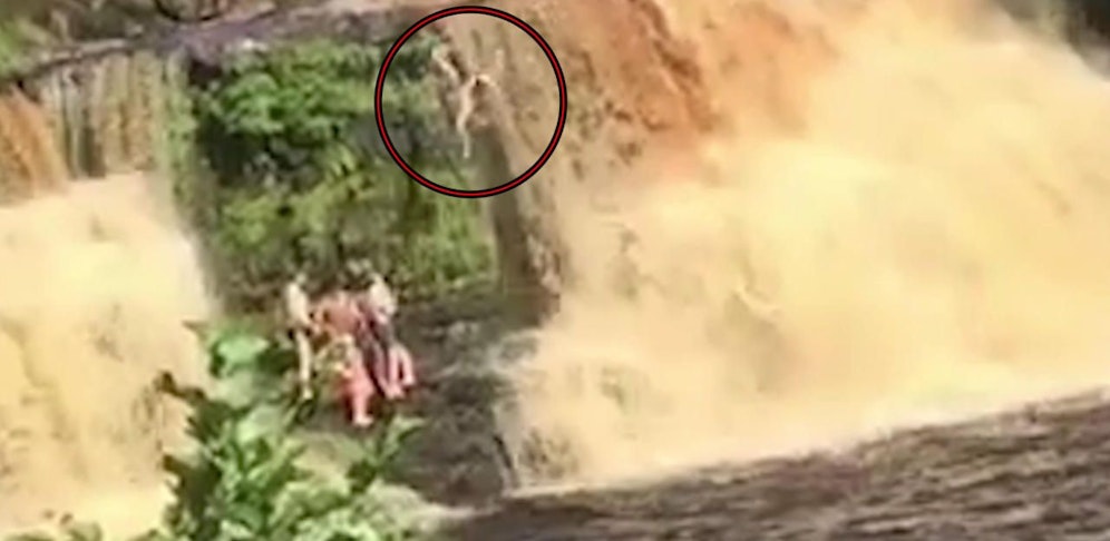 Ein Teenager, ein 10 Meter hoher Wasserfall und eine plötzliche Welle: Diese Kombination sorgte in England für eine brandgefährliche Situation. Der 17-jährige Harry W. ist in einem Video vom Vorfall zu sehen, wie er kopfüber und mit den Füßen strampelnd in die Tiefe stürzt.