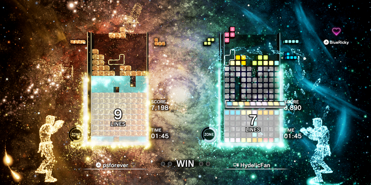 Das klingt nervig, war es aber nicht. Vielmehr verlor sich der Spieler in einer seltsamen Harmonie, verwuchs mit der Musik und den Grafikeffekten. Im "Story"-Modus erlebte der Spieler eine faszinierende Reise durch die 30 Level, die immer schneller und schwieriger wird und das klassische Tetris-Erlebnis bietet. Wem, das nicht reichte, fand das Richtige für sich in den übrigen neun Modi. So gab es Marathon-Herausforderungen ebenso wie jene, in denen bestimmte Zeilen aus einem Gebilde herausgelöst werden sollten. Wer ein PlayStation-VR-Headset hatte, konte sogar im VR-Modus zocken.