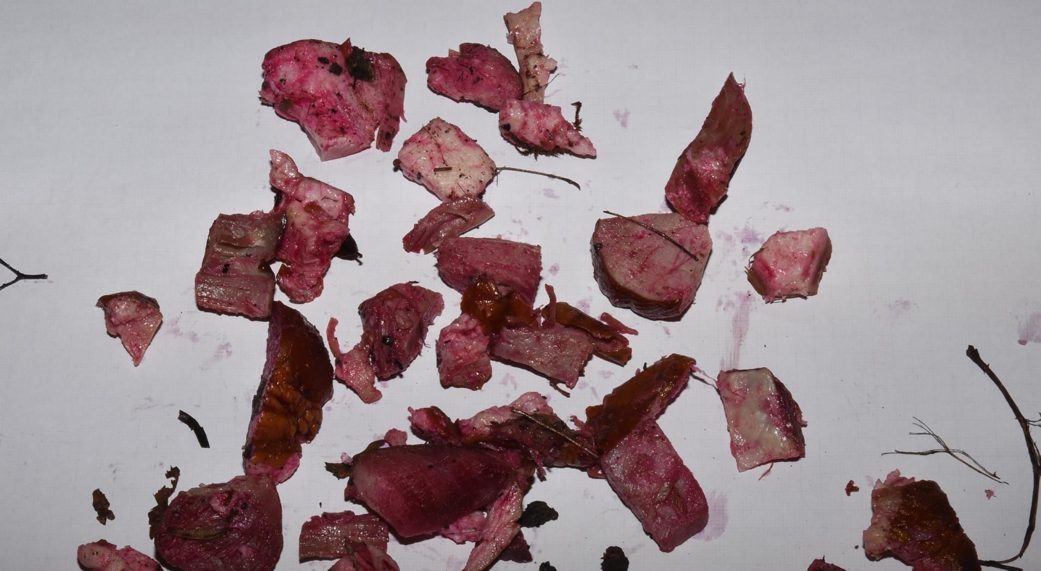 Die Polizisten durchsuchten daraufhin den gesamten Park und konnten rund 20 Fleischstücke mit einer Größe von. zwei bis drei Zentimeter finden und einsammeln. Die Fleischstücke wiesen eine auffällige rosafarbene Verfärbung auf.