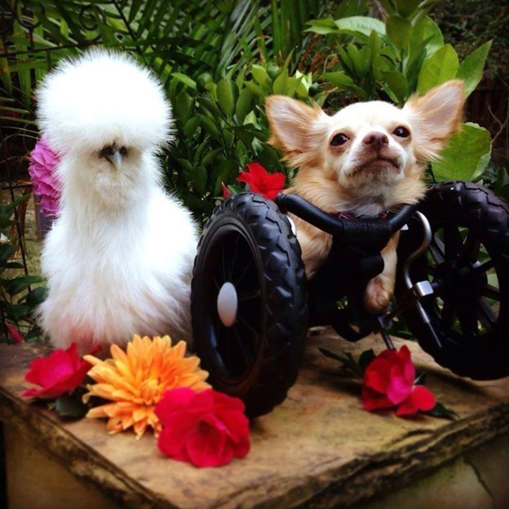 Das Internet hat zwei neue, ziemlich tierische Stars: Roo, ein Chihuahua ohne Vorderbeine, und das Seidenhuhn Penny haben im Duluth Tierheim im US-Bundessstaat Georgia nicht nur ein Heim, sondern auch einander gefunden. Die beiden dicken Freunde und wurden inzwischen zu Internet-Stars.