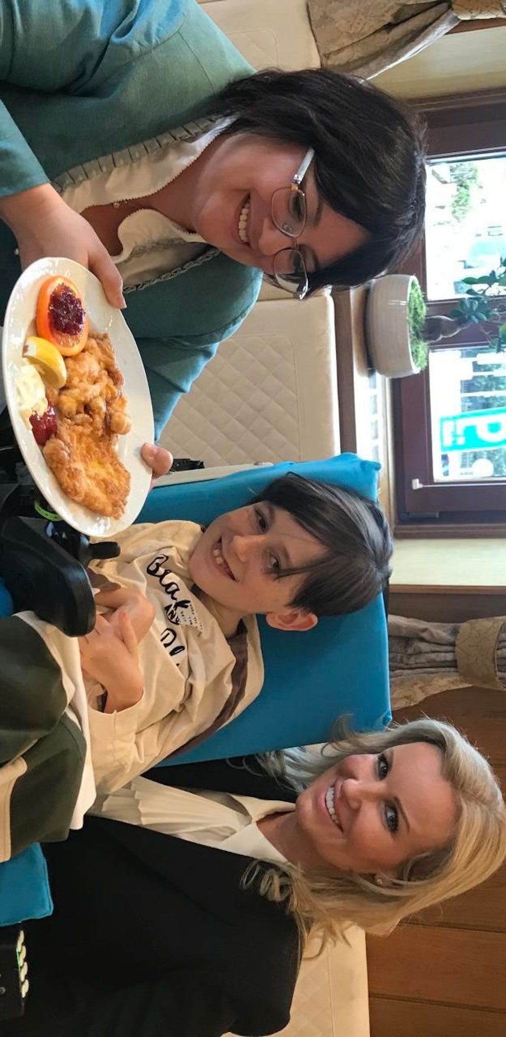 Am heutigen Montag konnte der junge Steirer – ohne Schalensitz und Kopfstütze – im Grazer Gasthaus Sternwirt endlich wieder seine Lieblingsspeise, ein Schnitzel, essen. „Die Fortschritte sind wirklich beachtlich", sagen Rechtsanwältin Karin Prutsch und Mama Claudia Polic unendlich dankbar beim gemeinsamen Mittagessen.