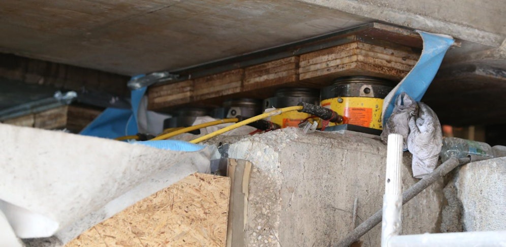 Nach dem Lagertausch an Pfeiler 7 (Pfeiler in der Neuen Donau) und Pfeiler 10 (Pfeiler am Hubertusdamm) im Herbst 2016 werden nun weitere Brückenlager getauscht. Dazu muss due Brücke mittels hydraulischer Pressen 10 Millimeter angehoben. Jede der 28 Pressen muss dabei ein Gewicht von ca. 500 Tonnen heben.