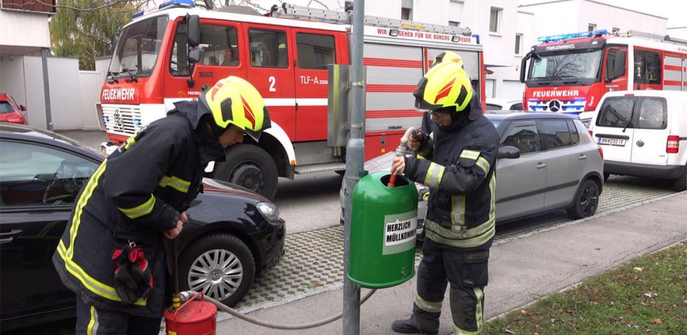 Nur wenige Meter neben den glosenden Zeitungen, hatte der Zündler in einer Altpapiertonne Feuer gelegt und den Container einfach wieder geschlossen – ebenso wie in einem zweiten Mistkübel.