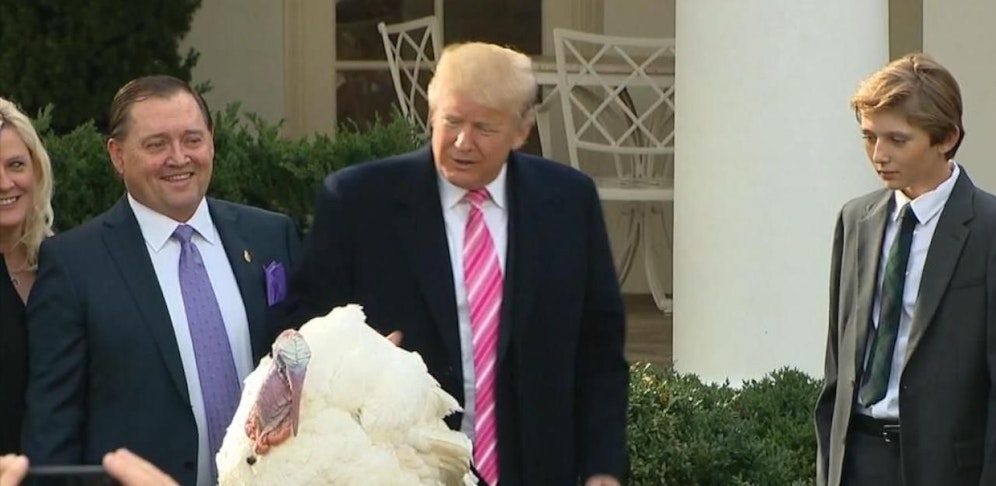 Es hat Tradition: Jedes Jahr begnadigt der US-Präsident zwei Truthähne. Trump witzelte, dass er die Begnadigungen von Obama rückgängig machen wollte.