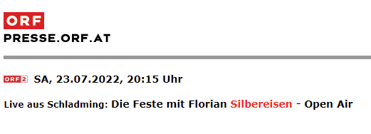 Derzeit laufen die Vorbereitungen zur großen "Schlagerstrandparty 2022" (9. Juli) und "Schlager des Sommers 2022" (15. Juli) auf Hochtouren. Gerüchte, dass eine dritte Silbereisen-Show im Sommer in Planung sein soll, halten sich seit Wochen hartnäckig. Dazu ist die Ankündigung auf der ORF-Presseseite eindeutig.