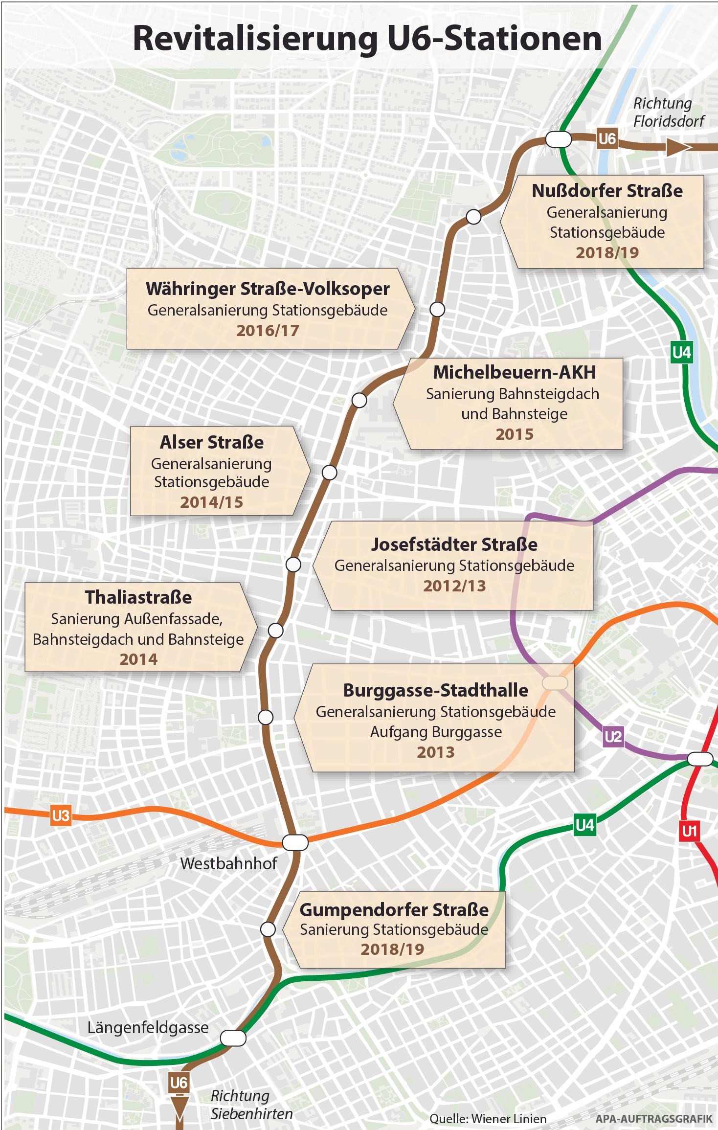 Die Stiegen der historischen Station wurden komplett abgetragen und neu errichtet. In der Gumpendorfer Straße und in der Nußdorfer Straße werden noch die Fassaden der Stationsgebäude saniert, die aber keine Einschränkungen für die Fahrgäste mit sich bringen. Alle Sanierungen wurden in enger Abstimmung mit dem Bundesdenkmalamt durchgeführt.