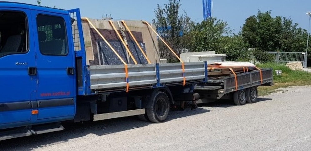 Mit dem Fahrzeuggespann waren Granitplatten und Eisenteile transportiert worden. Der Klein-Lkw ohne Anhänger (erlaubtes Höchstgewicht 3.490 Kilo) wog 8.250 Kilo, der Anhänger (erlaubtes Höchstgewicht 1.800 Kilo) 2.880 Kilo. Zudem wurde bei der technischen Kontrolle festgestellt, dass an der Hinterachse des Zugfahrzeugs am rechten inneren Zwillingsreifen die Lauffläche fehlte.