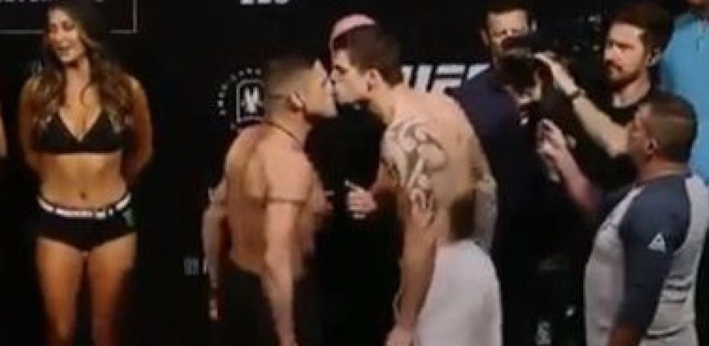 Während Diego Sanchez vollgepumpt mit Adrenalin von der Waage stieg und zum bösen Blick ansetzte, küsste ihn sein Gegner auf die Nase. Das schmeckte ihm so gar nicht, UFC-Präsident Dana White musste die beiden trennen.