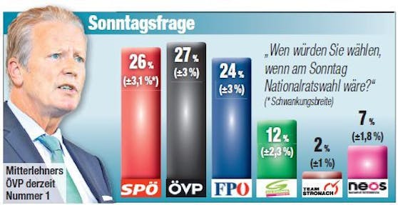 Die Koalition konnte mit der Steuerreform die FPÖ bremsen. Das zeigt eine Exklusiv-Umfrage von "Unique research" für "Heute" (800 Befragte).