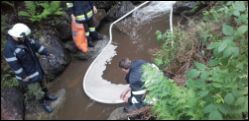 Durch den Verkehrsunfall wurde aber der Treibstofftank beschädigt und es flossen etwa 200 Liter Diesel aus. Dieser gelangte über das Regenwassergerinne in den naheliegenden Modriachbach und anschließend in eine Fischteichanlage. Von den Einsatzkräften der Feuerwehr Pack wurde beim Zufluss zum Modriachbach eine Ölsperre mit schwimmenden Ölbindemitteln errichtet.