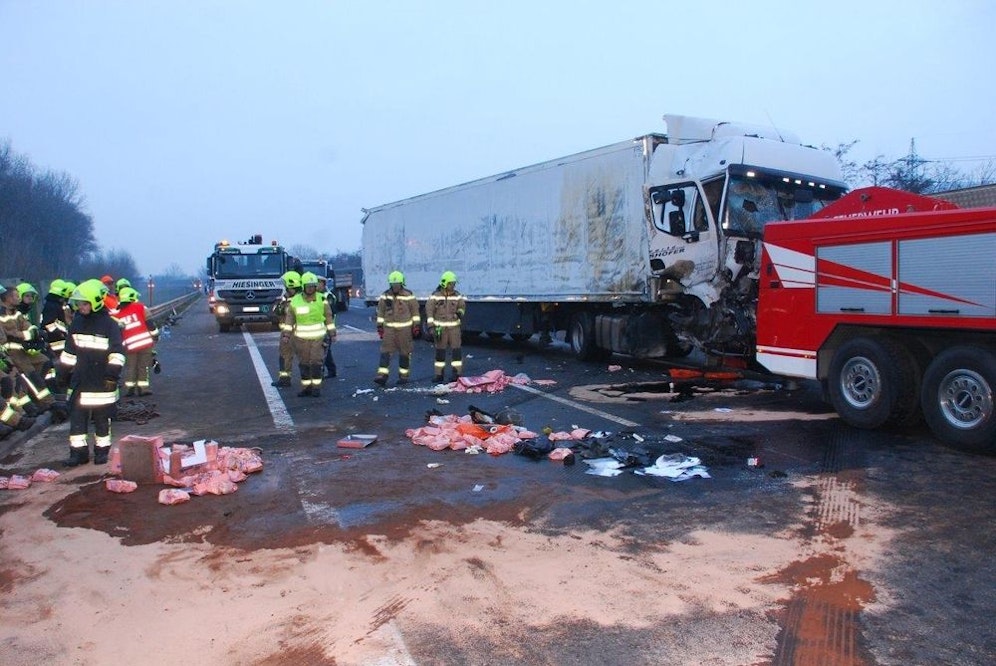 Die A22 (Donauuferautobahn) zwischen Korneuburg Ost und Strebersdorf in Fahrtrichtung Wien war nach einem schweren Lkw-Unfall fast sieben Stunden lang vollständig gesperrt. Ein mit Süßigkeiten voll beladener Lkw stürzte laut ÖAMTC-Mitarbeiter Gerhard Koch gegen 02.00 Uhr in der Früh um, der Lenker kam dabei ums Leben.