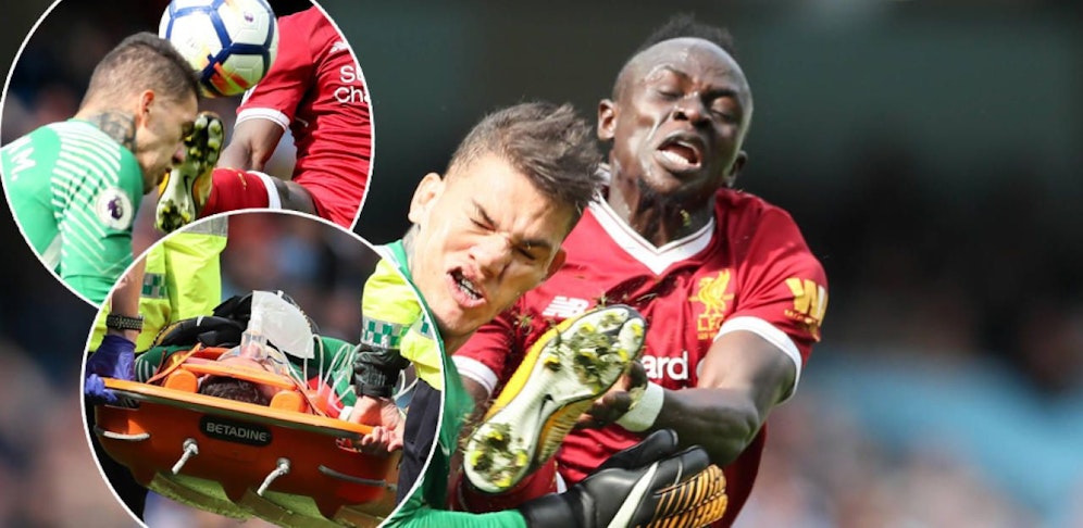 Es war der große Aufreger beim Premier League-Kracher zwischen Manchester City und Liverpool. Ex-Salzburger Sadio Mané ging mit gestrecktem Bein extrem brutal gegen Tormann Ederson in einen Zweikampf. Der Senegalese traf den Goalie mit voller Wucht mit seinem Fuß im Gesicht. Der Brasilianer musste minutenlang behandelt werden und vom Feld getragen werden.