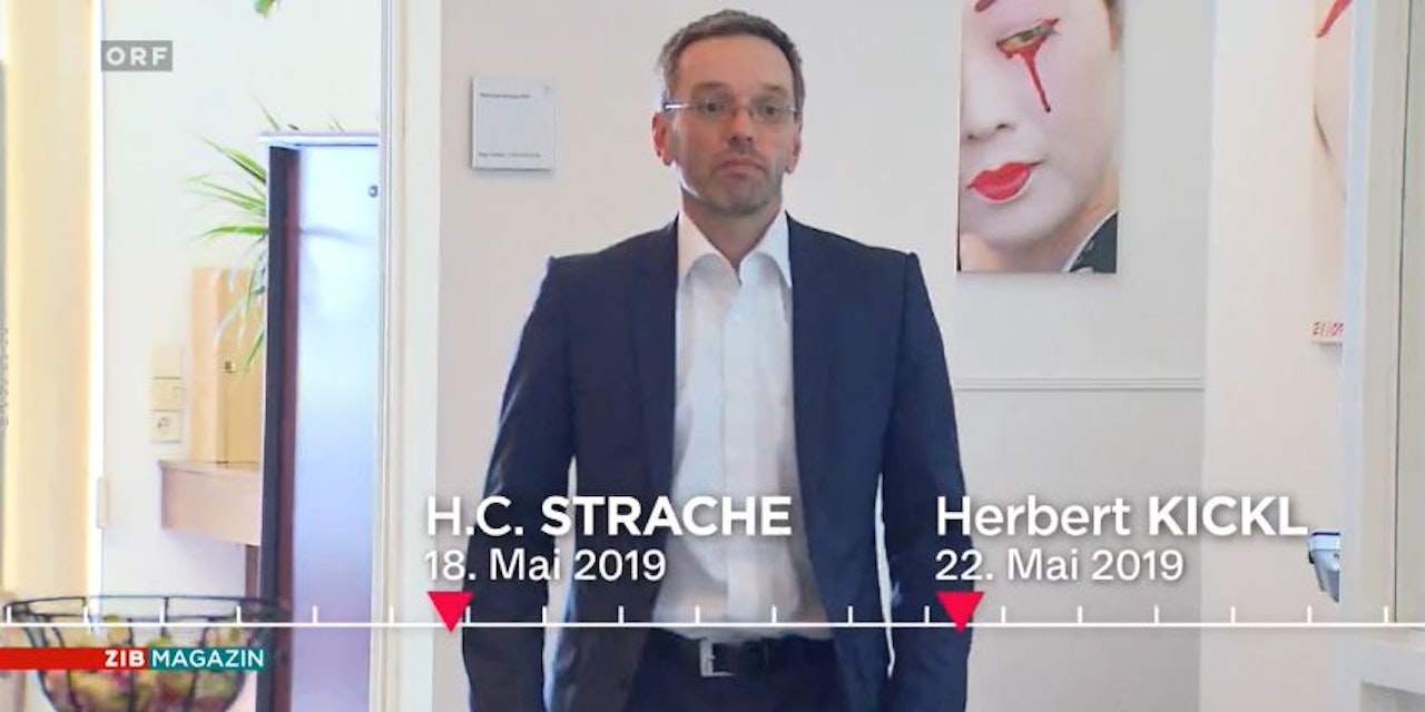 Im ZIB Magazin wurde am Montag unter dem Titel "Ministerkarussell dreht sich weiter" über die Regierungswechsel der vergangenen Jahre berichtet, auch über das Ende von Türkis-Blau.