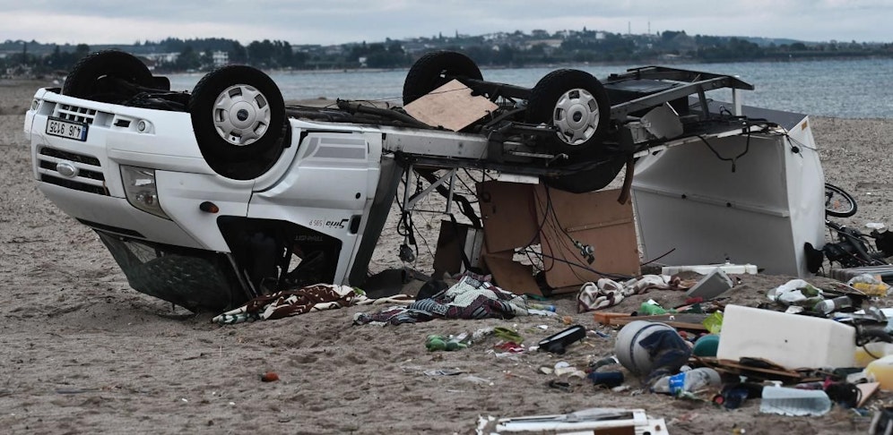 Knapp fünf Minuten später habe es heftig zu stürmen begonnen: "Bäume und Strommasten fielen herunter. Wir beschlossen, mit dem Auto nach Thessaloniki zu flüchten."