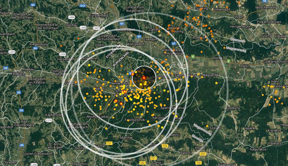 Wie das Blitzradar deutlich zeigte, kamen die Gewitterzellen aus Slowenien und entluden sich im Südosten Österreichs.
