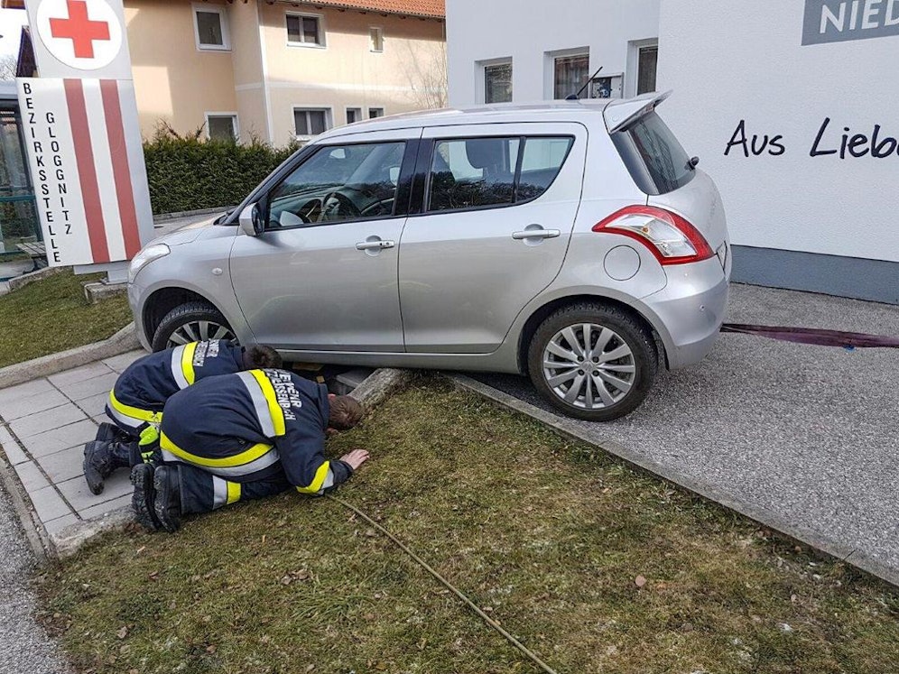 Direkt vor dem Rettungstützpunkt in Gloggnitz musste am Mittwoch eine Rentnerin gerettet werden, genauer gesagt ihr Suzuki-Kleinwagen. Die Dame dürfte die Stufen erst im letzten Moment bemerkt haben, hielt sofort an und rief die Feuerwehr. Die Florianis konnten in behutsamer Maßarbeit den silbernen Wagen schonend bergen und somit einen gröberen Schaden am Pkw verhindern.