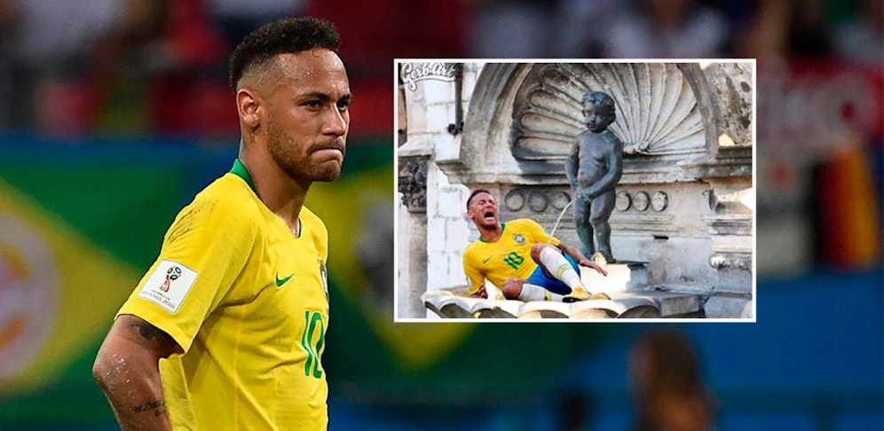 Auf einer vom 47-Jährigen Sozialdemokraten verbreiteten Fotomontage ist der sich windende Neymar zu sehen. Direkt vor dem Manneken Pis, einer der Sehenswürdigkeiten der belgischen Hauptstadt.