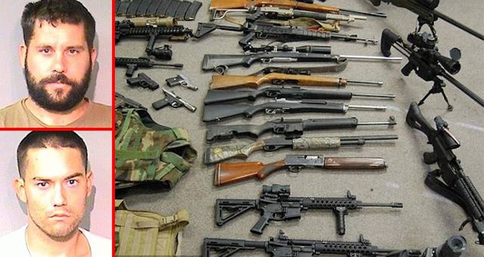 Bei der Hausdruchsuchung fanden die Polizisten neben einer Plantage mit 1.400 Cannabis-Pflanzen auch mehrere tausend Dollar Bargeld und ein riesiges Waffenarsenal. 22 Feuerwaffen, darunter auch automatische Waffen, Scharfschützen- und sogar Sturmgewehre besaßen die beiden Drogenfarmer. Außerdem fanden die Beamten kugelsichere Westen und große Mengen von Munition.