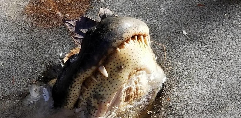 Ein Park in North Carolina zeigt nämlich im sozialen Netzwerk, wie die Reptilien überleben, wenn ihr Lebensraum einfriert: Sie stecken ganz einfach die Schnauze nach oben, um Luft zu bekommen, und lassen sich vom Eis einhüllen. So harren die Alligatoren aus und warten auf wärmere Zeiten.