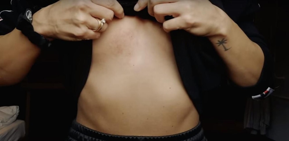 Und zwar an einer sehr pikanten Stelle seitlich unter der rechten Brust. In dem Video lüftet Mai ihren schwarzen Pulli und zeigt den Zuschauern die kaum sichtbare Hautveränderung.