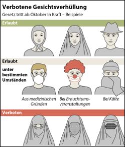 Dass das Gesetz nicht allein auf die Burka-, und Islamdebatte zu reduzieren ist, beweist das Verbot des Mundschutzes. Wie der Flyer dem Leser zu verstehen gibt, wird der Mundschutz nur unter bestimmten Bedingungen zugelassen.