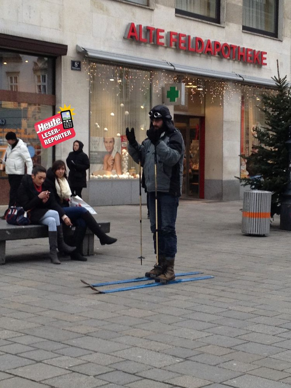 Leserreporter Toni Konjuhi hat den verirrten Skifahrer auf dem Stephansplatz genknipst und uns zukommen lassen. Was hinter der Aktion steckt, konnten wir leider nicht in Erfahrung bringen. Für Aufsehen hat der junge Mann mit seinem Auftritt auf jeden Fall allemal gesorgt.