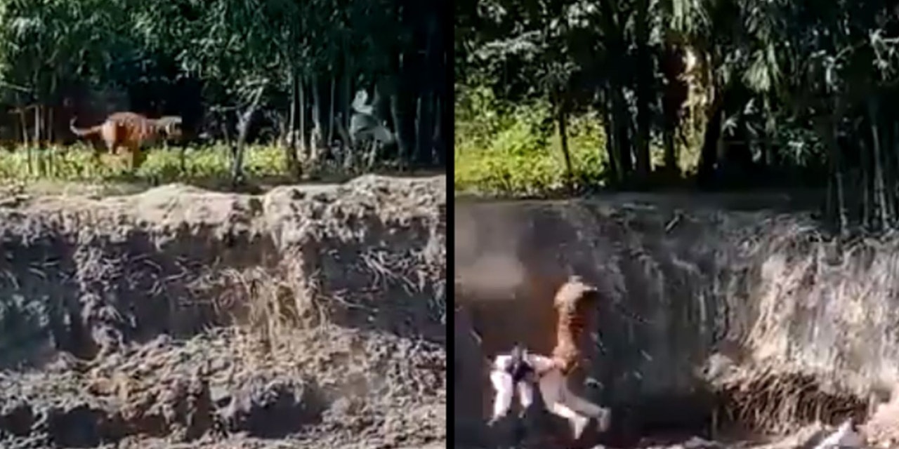 Bei dem Tigerangriff wurden mindestens zwei Menschen verletzt und der Tiger marschierte nach der gezeigten Attacke zurück in den Wald.