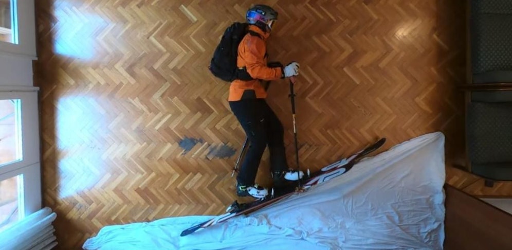 Der Sohn zweier Skilehrer verlegte seinen Urlaub kurzerhand ins eigene Wohnzimmer in Barcelona. In voller Ski-Montur drehte er einen 57 Sekunden langen Stop-Motion-Film, "Freeride at home". Darin tut der 28-Jährige so, als würde er Skifahren, Springen und Gipfel erklimmen. Als Berg dient ihm dabei seine Bettdecke.
