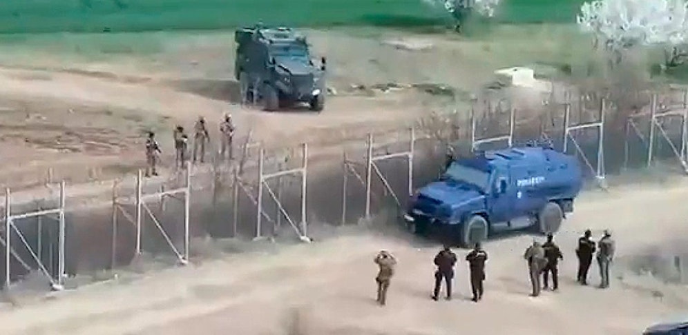 Seit Mittwoch steht auch Österreich an der EU-Grenze zwischen Griechenland und der Türkei im Einsatz. Innenminister Karl Nehammer (ÖVP) entsandte ein Team von 13 Cobra-Einsatzkräften (davon zwei Piloten) mit zwei Drohnen, einer Nachtsichtausrüstung, Wärmebildkameras und einem gepanzerten Fahrzeug zum Grenzschutzeinsatz. Das Cobra-Team ist während des Einsatzes in Griechenland der griechischen "Schwestereinheit" EKAM unterstellt. Ein Video auf Twitter zeigt nun die Patrouille des gepanzerten Fahrzeugs an der EU-Grenze.