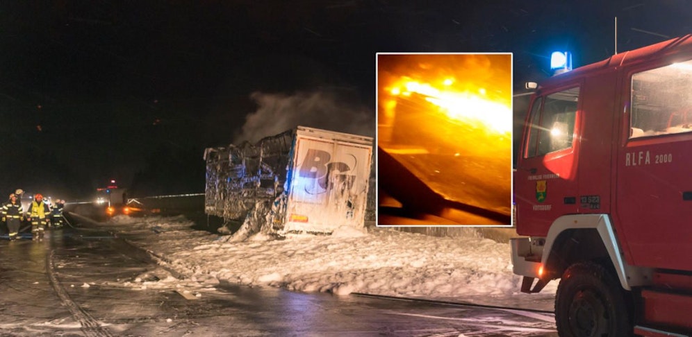 Plötzlich platzte ein Reifen, wodurch Sekunden später Feuer ausbrach. Der 42-jährige Fahrer konnte außerhalb des Tunnels auf dem Pannenstreifen stehen bleiben. Die Flammen griffen innerhalb von Sekunden auf den Anhänger und die Ladung über.