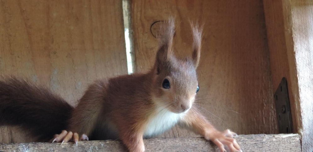 Immer wieder werden junge Eichhörnchen vor allem bei Holzarbeiten gefunden und landen ohne Mutter in Haringsee, wo sie gepflegt werden. Dort bleiben sie aber nur so lange, bis sie alt genug sind, um sich in freier Wildbahn zurechtzufinden. Europäische Eichhörnchen gibt es mit verschiedenen Fell-Färbungen. Von rot über braun und grau bis schwarz ist alles dabei.