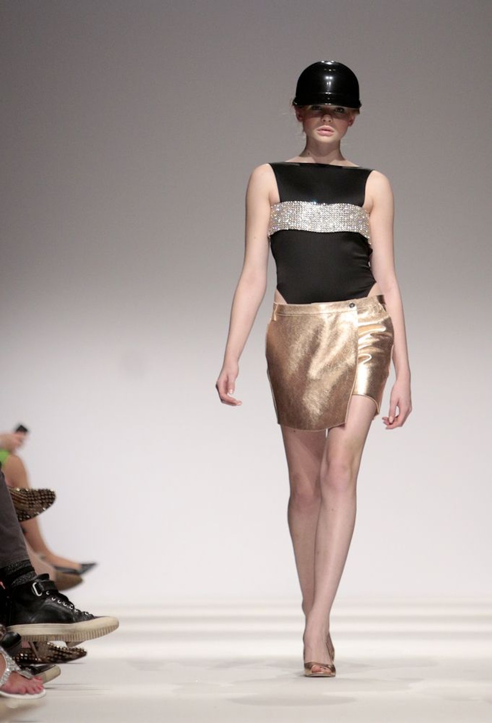 Pünktlich um 20 Uhr schickte der Designer dann seine Männerkollektion auf die Bühne. Mit der Linie "Atelier Michalsky" zeigt der Designer einen aufgeräumten, jungenhaften Look in Schuluniform-Anmutung mit viel Beinfreiheit. Auch die Damenkollektion ist vorallem eines: kurz.
