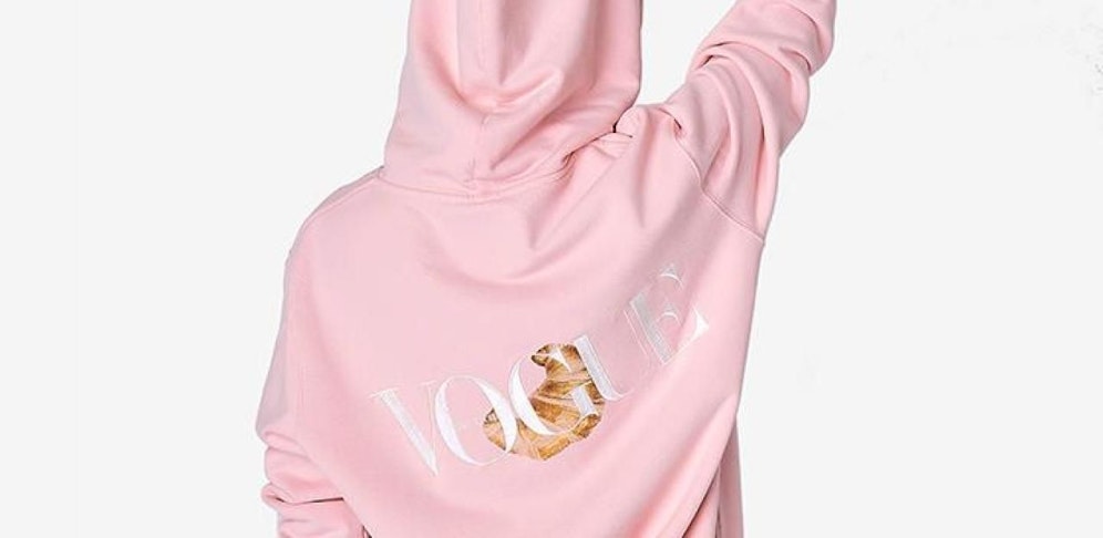 Das Feelgood-Gebäck hat es jetzt auch auf die neue Fair Fashion Kollektion der "Vogue" geschafft. Auf zuckerzartem Rosa "gebettet", ist das Croissant in das "Vogue"-Logo eingefügt worden und veredelt dort den "Comfy Look".