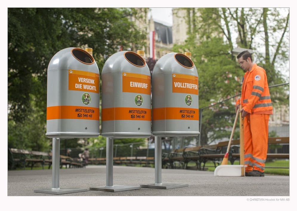 Während der Fußball-EM in Frankreich setzt die MA 48 verstärkt auf Fairplay – nicht nur beim Fußball, sondern auch in Sachen Sauberkeit. Darum wurden die witzigen Mistkübel-Sprüche um Kicker-Ausdrücke wie "Versenk die Wuchtel", "Volltreffer" und "Einwurf" erweitert. "So wollen wir die fußballbegeistern Fans positiv motivieren, ihre Abfälle in die dafür vorgesehen Behälter zu werfen", heißt es von der zuständigen Stadträtin Ulli Sima (SPÖ).