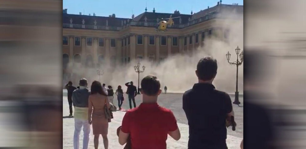 Gegen 15 Uhr spielten sich tumultartige Szenen vor dem Schloss Schönbrunn ab. Nachdem Rettungsfahrzeuge die Aufmerksamkeit der Touristen auf sich zogen, landete ein Christopherus-Hubschrauber direkt vor dem Gebäude.