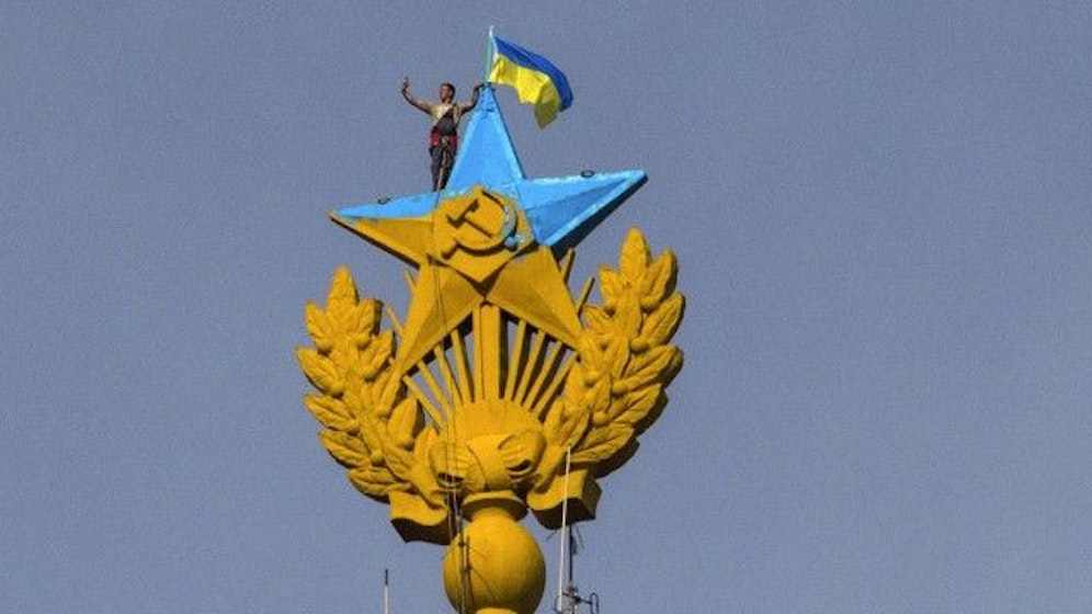 Grund: Der Klettermaxe aus Kiew hisste auf einem 235-Meter-Turm in Moskau die ukrainische Flagge und malte einen Sowjetstern blau an.