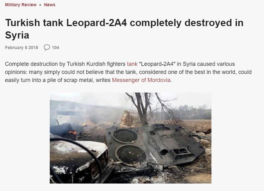 Der Artikel, in dem das Bild verwendet wird, behandelt die Zerstörung des modernen Kampfpanzers im Dienste der türkischen Armee in Syrien. Die Zerstörung des Leopard-Panzers wurde damals auch auf Video dokumentiert, dass Wrack anschließend ausführlich fotografiert.