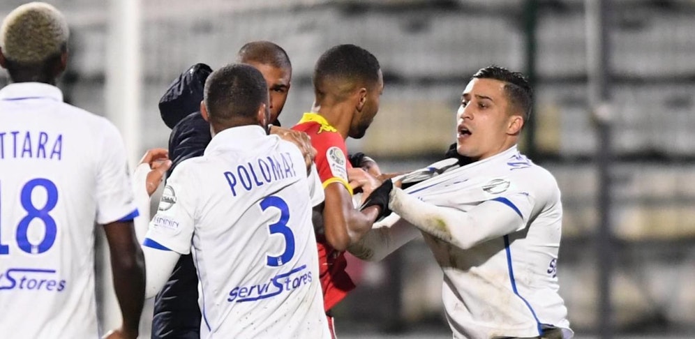 Eine höchst ungewöhnliche Szene spielte sich in der zweithöchsten französischen Liga ab. Zwei Fußballer von Auxerre gehen wie von Sinnen aufeinander los.