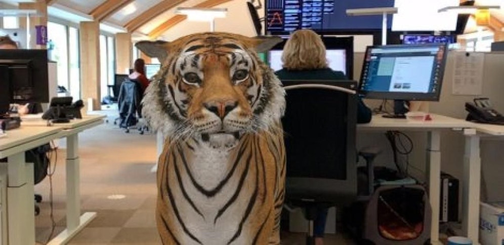 Die dreidimensionalen Tiere in Lebensgröße können mit einem Handy direkt zu dir nach Hause oder ins Büro geholt werden.