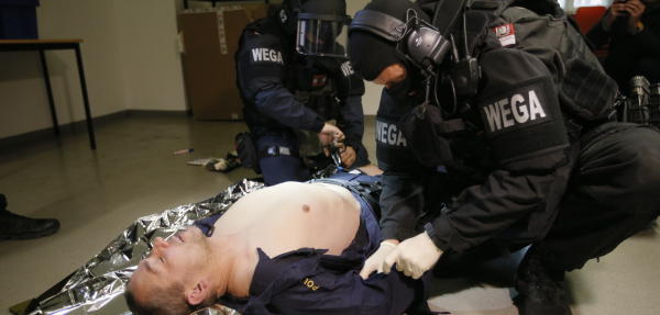 "Wir üben regelmäßig den gesamten Ablauf, von der Sicherung eines Tatortes bis hin zum Abtransport der Verletzten und arbeiten dabei eng mit der Berufsrettung zusammen", erklärt der WEGA-Beamte Revierinspektor Michael Kargl, selbst "Medic". Im Prinzip gehe es darum, den Verletzten mehr Zeit zu verschaffen. "So können wir in nicht gesicherten Zonen, wo die Rettung nicht hin kann, dennoch eine rasche Erstversorgung für Verletzte ermöglichen und so die Überlebenschancen deutlich erhöhen", so Kargl.