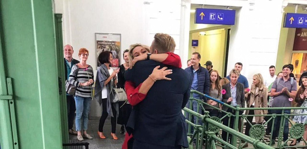 Großer Bahnhof für die Liebe: Vor 13 Jahren lernten sich Lisa und Philip (beide 28) am Bahnhof Hütteldorf kennen. Nun folgte just dort der nächste Schritt.